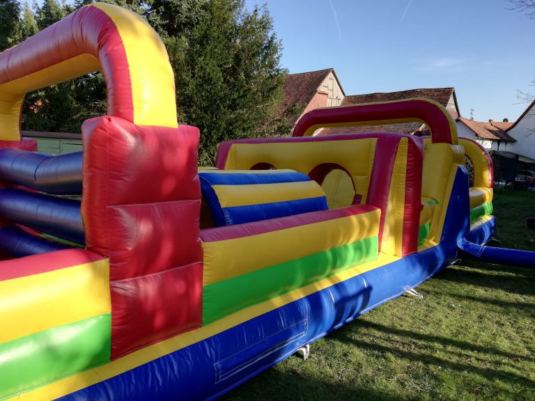 Unsere Hüpfburg Hindernisbahn ist für alle Altersklassen geeignet, da sie aus Lkw-Plane besteht.