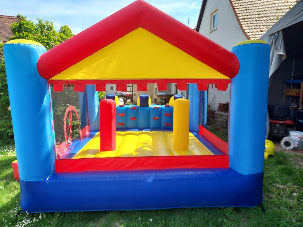 Unsere Hüpfburg Aladdin ist für Kinder, Jugendliche und auch Erwachsene geeignet, da sie aus LKW-Plane hergestellt wurde. Das Dach schützt sie vor Sonneneinstrahlung und auch vor Regen.